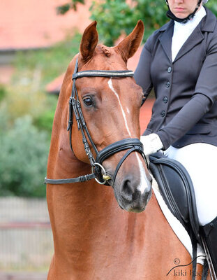This dressage mare is full of type and she captivates with her large frame and her beautiful face. Her impressive motions and her rideability make for a clear recommendation.